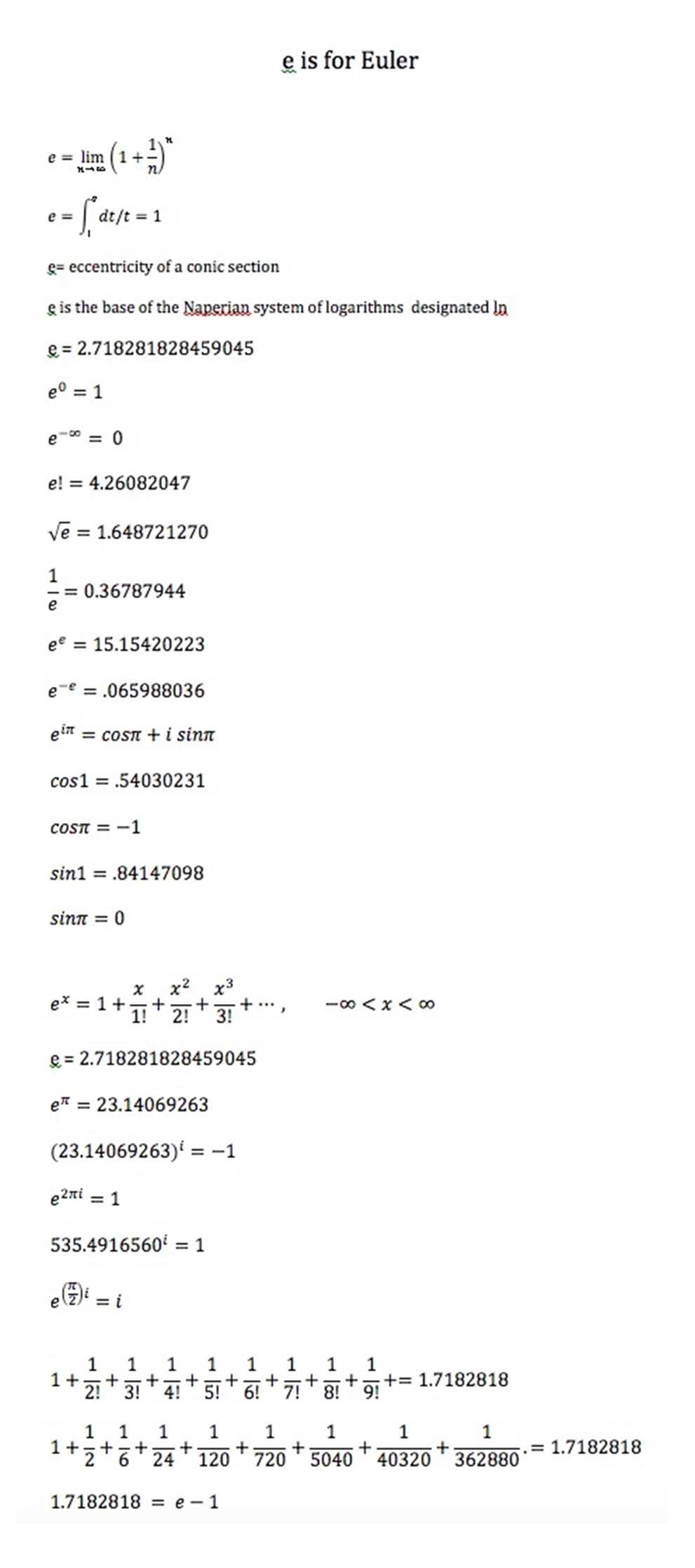 ListsOne Hand ClappingThe ParadoxChanges Of MindMathematics Important Numbers Reciprocals e is for Euler p is for Pi i is for Imaginary